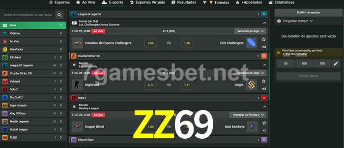 O ZZ69 oferece uma grande seleção de opções de apostas em e-sports com probabilidades competitivas